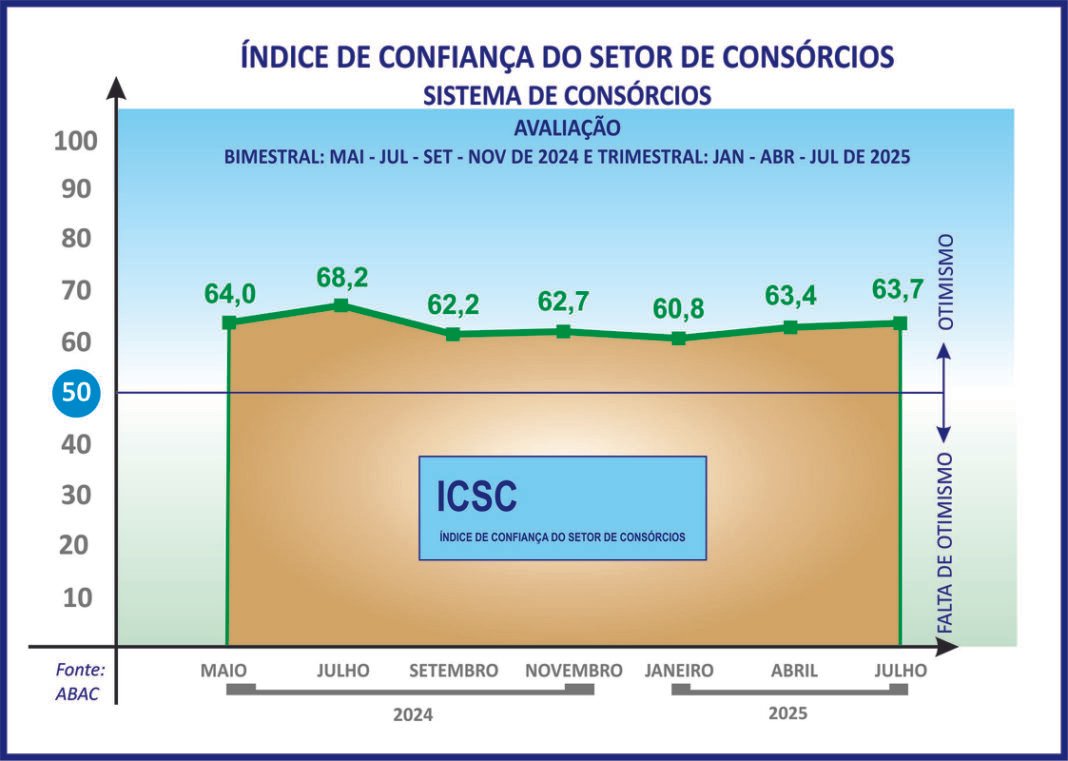 O Índice de Confiança do Setor de Consórcios – ICSC, criado pela Associação Brasileira de Administradoras de Consórcios (ABAC), chega ao seu sétimo resultado, em julho. Com o objetivo de referenciar os agentes dos mais diversos setores econômicos, consumidores e participantes do Sistema de Consórcios, sua metodologia de cálculo objetiva medir qual é o nível de confiança das associadas da entidade no desempenho do mecanismo.